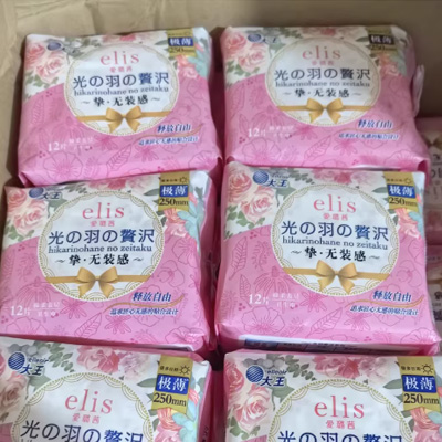 大王Elis爱璐茜卫生巾250mm光羽奢适日用极薄棉柔女学生姨妈巾12片装,单包6块...